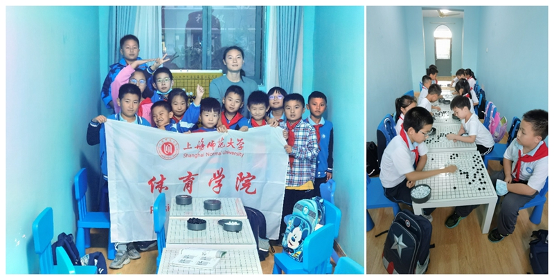 体育学院学生党员,入党积极分子将围棋入门课程带入上海市奉贤区海湾小学,带领同学们走进奥妙无穷的围棋世界。该课程围绕围棋基本棋型,基本杀棋技巧,基础布局思想三大板块,探索围棋一招一式间的智慧和谋略,通过学习围棋棋型,互相对弈,班级围棋比赛,锻炼同学们的思维能力,培养体育竞技精神,收获友谊,赛出智慧。