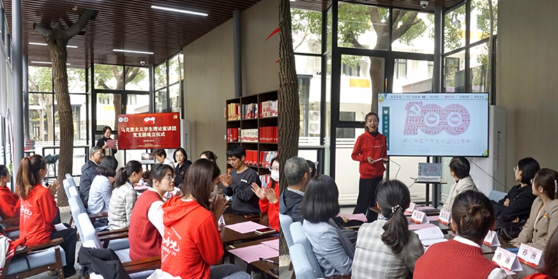 为更好地宣传、贯彻党的创新理论,认真贯彻落实习近平新时代中国特色社会主义思想,弘扬“支部建在连上”的优良传统,推动党史学习教育走深走实,11月3日下午,马克思主义学生理论宣讲团党支部成立仪式在徐汇校区东部生活园区阳光书吧举行。学院党委书记刘凤,党委副书记、副院长孙琳,学院退休党支部书记、特邀组织员单冠初,党员教师代表贾淑品教授,理论宣讲团教师党员郭力源老师、孙洲老师,辅导员陈琳老师及马克思主义学生理论宣讲团党支部成员参加,仪式由学院党委专职组织员张婷婷主持。