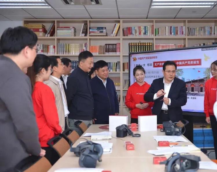 会前,沈炜、闵辉实地调研了上海师范大学马克思主义学院建设情况,走访马院图书馆,观摩学院建设发展成果展示、学生理论宣讲团党史学习教育宣讲活动,与现场师生交流。