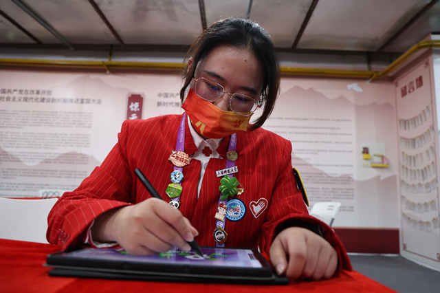 在平均每张画作4个小时的创作的过程中,大家不断发现细节,发现美。原来,进宝的围巾颜色变化与“一带一路”倡议密切相连,原来场馆中那么多自贡彩灯的设计是如此精妙……陈虹妃由衷希望,这份美好随着板绘而更有温度,也希望每个“小叶子”从此更厚植志愿精神。