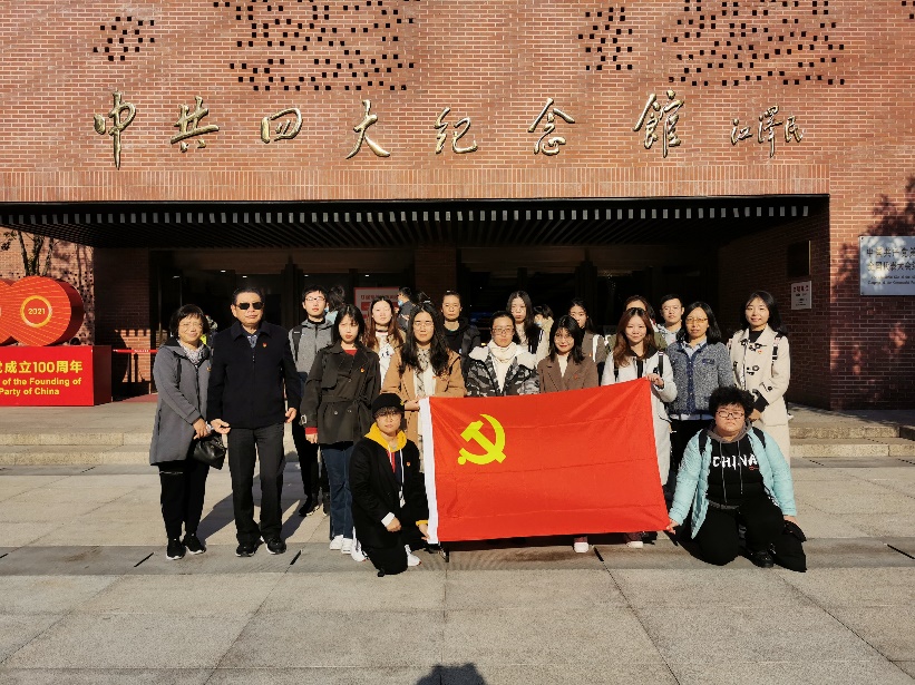 11月12日下午,对外汉语学院本硕党支部同结对退休局级干部直属党支部一道,实地参观了中共四大纪念馆,并于1925书局进行座谈交流,追忆伟大建党初心,重温伟大建党精神。上海市老教授协会副会长、上海师范大学退休局级干部党支部委员、学校党委原副书记黄刚,对外汉语学院党委书记刘岚、学工办主任李琳、组织员洪爽及本硕党支部全体党员出席本次参观学习活动。