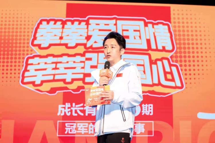 在热烈的氛围中,奥运冠军邹市明登台亮相。他回顾了二十多年的拳击生涯。