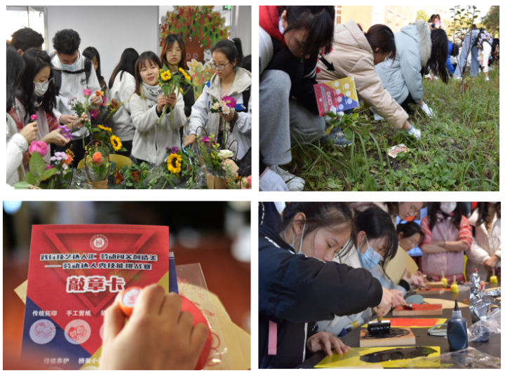 11月24日下午,劳动达人秀技能挑战赛在上海师大奉贤校区开赛,通过设置传统拓印,手工剪纸,扎染体验,插花技艺,绿植养护,拼装小匠,拆洗能手七个关卡,考验同学们的劳动技能。同学们在听取了比赛注意事项、领取集章卡和简单热身后,出发奔赴各个关卡参与比赛。