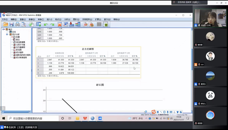 伍秋萍老师以海外志愿者的教学日志为例,说明如何从教学实践中发现研究问题并开展研究。伍老师通过六个专题较为系统地讲授量化研究的基本概念,演示SPSS软件的使用方法,详细说明描述性统计与推断性统计在语料库研究、质性研究、教学实验研究等领域的应用。