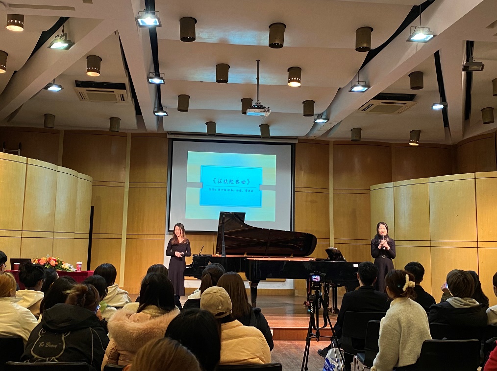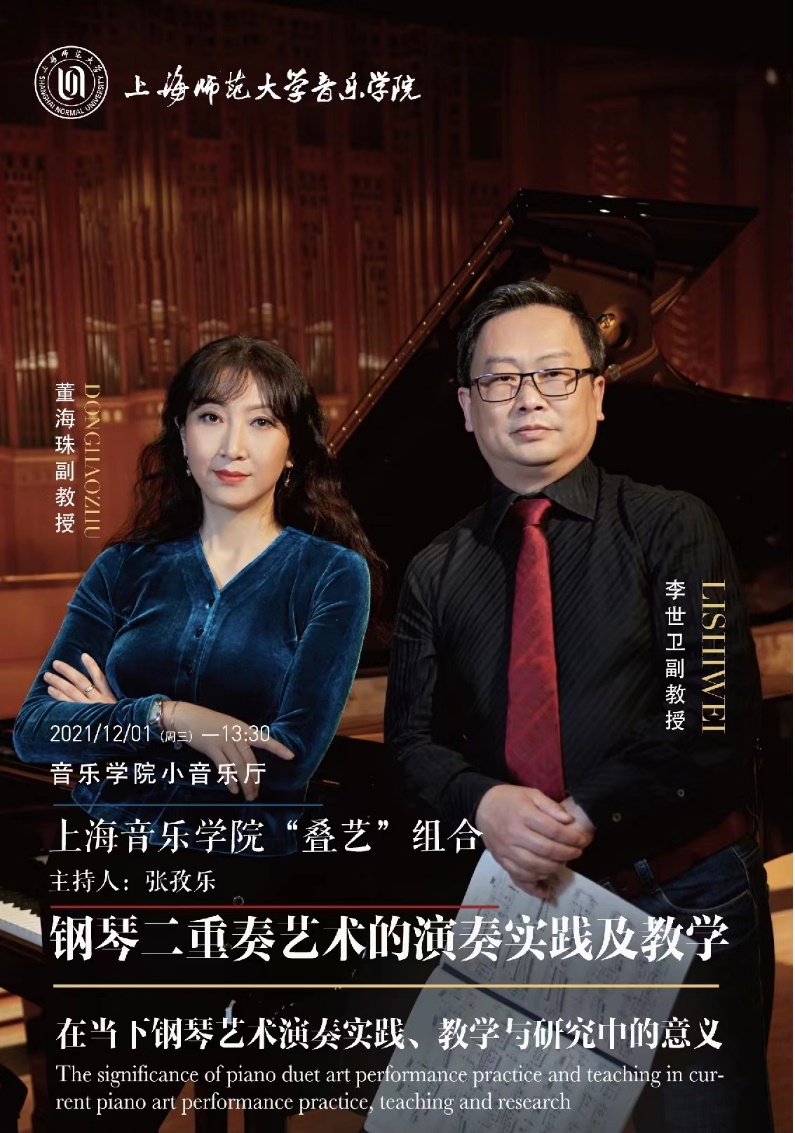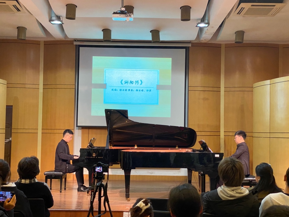 12月1日,初冬暖阳晴空碧的午后,由上海音乐学院的李世卫副教授和董海珠副教授组成的“叠艺”组合,受邀来我校音乐学院开展了一场“钢琴二重奏艺术的演奏实践及教学”的讲座。“叠艺”组合携十几位来自上海音乐学院的师生为大家带来了五首或改编或原创的中国钢琴重奏作品。本次讲座音乐会吸引了我校音乐学院钢琴系师生前来观摩聆听,现场气氛非常热烈,座无虚席。