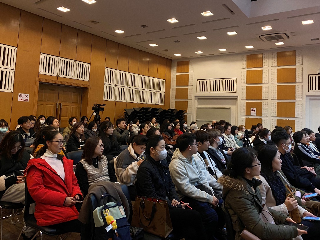 讲座在主持人张孜乐甜美的嗓音中开始。讲谈伊始,李世卫副教授向大家介绍了钢琴二重奏的起源与发展,他从古今中外作曲技法的横向对比与历史沿革并导引出此次讲座的主题——中国钢琴作品二重奏的创作与演奏。李世卫副教授和董海珠副教授本着对中国钢琴作品的热爱,对中国钢琴二重奏进行了探索性的研究与发展。李教授表示,由于中国作品相对较少,所以在研究到落实的过程中会遇到很多困难。本次音乐会演奏的五首作品从创编到最后的舞台呈现也是经历了重重困难,经过多次修改,历经重重关卡并非一蹴而就的。董教授表示开设钢琴二重奏课程的初衷是希望钢琴演奏专业的学生在学习和表演的道路上更多地与人交流与聆听,双钢琴的演奏方式是让两位演奏者学会互相配合,两人同时把握作品整体的音响架构,使演奏不再是一场孤独的自我旅行。同时董教授还鼓励同学们要学会用艺术的话语表达自己的音乐。