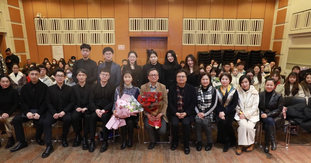 此次“钢琴二重奏艺术的演奏实践及教学”的讲座在老师、同学们的热烈掌声中圆满结束,本场活动让前来参加的师生们受益匪浅,钢琴系的教师们上台与李世卫副教授和董海珠副教授以及上音的师生们交流感想并合影留念。
