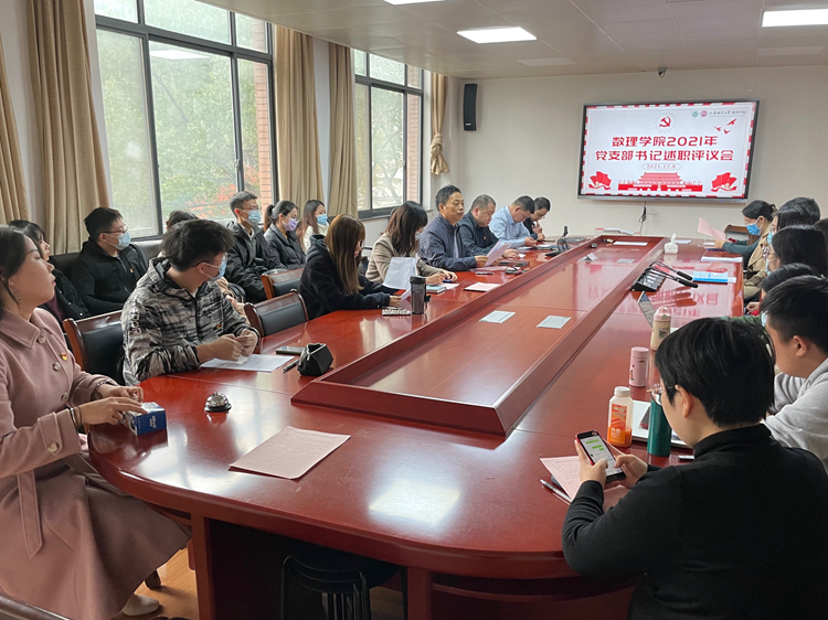 12月8日下午,数理学院2021年度党支部书记述职评议会议召开,学院党委书记樊连生主持会议,学院党委副书记、副院长胡仰乔、学院党支部书记、组织员、辅导员参加此次评议会。