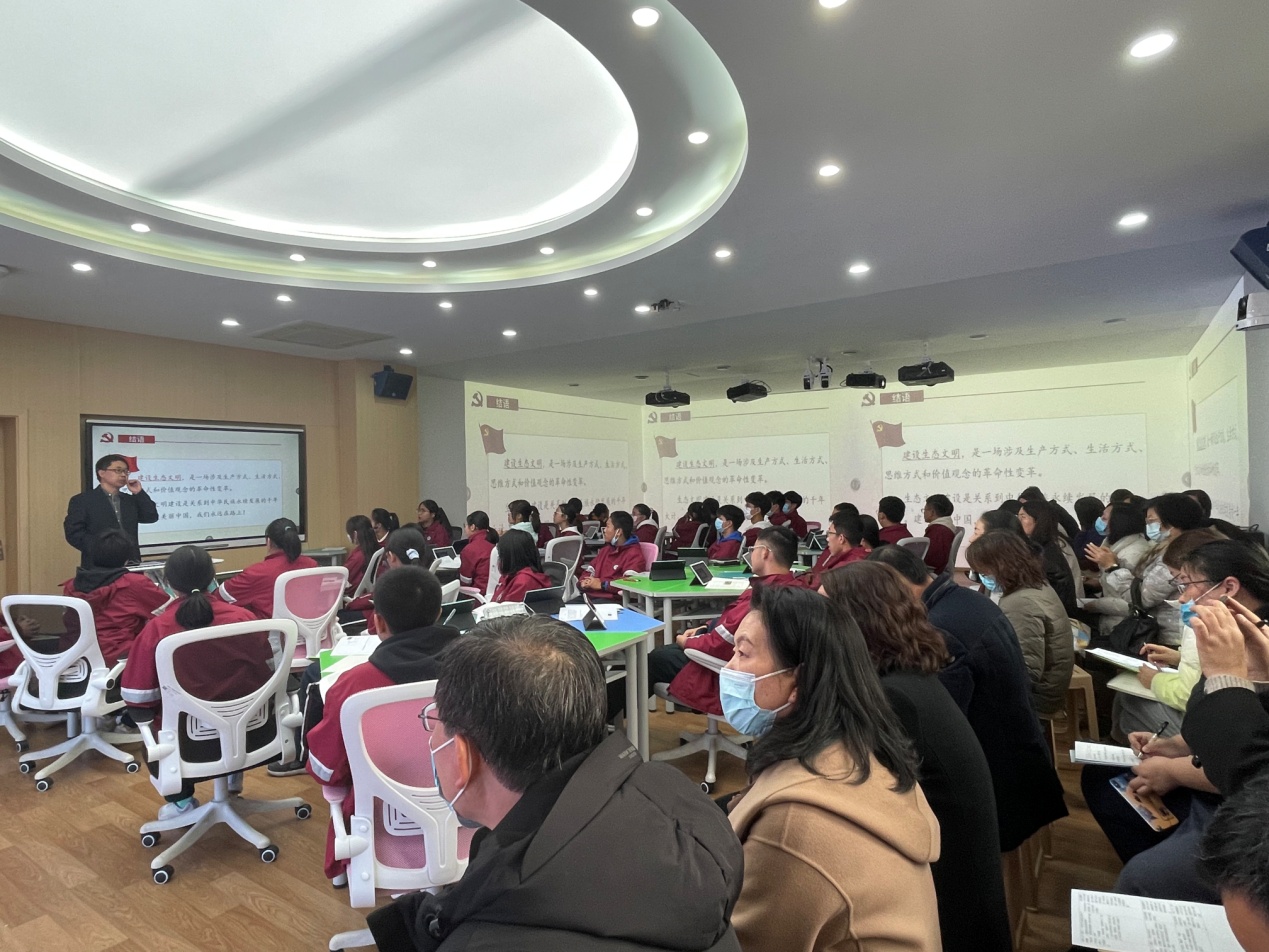 为深入贯彻习近平新时代中国特色社会主义思想进课堂,落实立德树人根本任务,在上师大附中学校党委的大力支持和浦东新区政治教研员的悉心指导下, 12月15日,学校政治组赵梓涛老师执教了一堂《绿水青山就是金山银山——学习习近平生态文明思想》的区级公开课。此次公开课也是该校党委组织的12月份主题党日活动之一。