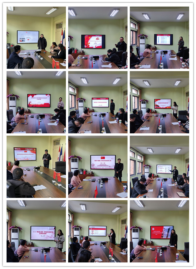 学生党支部书记分别围绕支部建设、学生党员发展、积极分子教育培养、学生党员常态化教育每年32学时教育培训要求落实情况、设岗定责、创新工作等方面进行了年度工作述职报告。