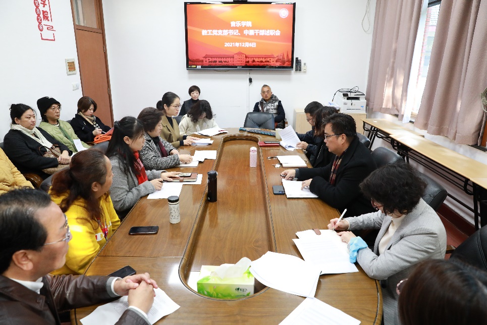 为加强学院党支部建设工作和党员发展工作,引导和督促学院党支部书记落实抓党建主体责任,根据校党委组织部印发《关于开展2021年度基层党组织书记抓基层党建工作述职评议考核的通知》的文件要求,音乐学院党委分别于12月6日上午召开了教工党支部书记述职考核会议、12月22日下午召开了学生党支部书记述职考核会议。音乐学院党委书记高亭、院长施忠、党政班子成员、党委委员、组织员、教工党支部书记、学生党支部书记一同参加。