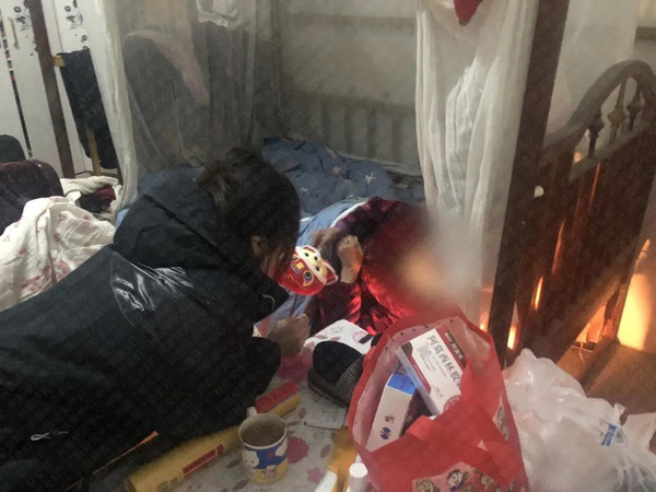 2019年8月,研究中心志愿者探望体弱卧床的章奶奶。(资料)