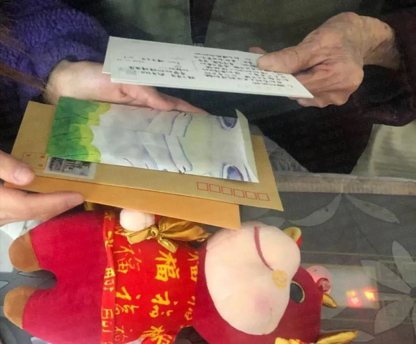 2021年1月,郴州奶奶与新春慰问行志愿者一起收阅上海中学生写给奶奶的信。(资料)