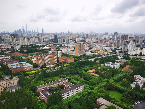 从复旦光华楼俯拍的复旦校园。(徐瑞哲 摄影)