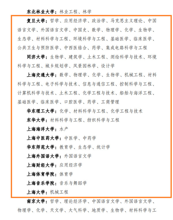 附:部分第二轮“双一流”建设高校及建设学科名单(上海地区) 来源:教育部官网