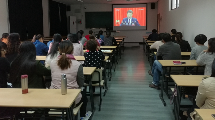 中国共产党第十九次全国代表大会开幕会于10月18日上午9:00在人民大会堂举行。外国语学院党委在新大楼106教室组织部分师生党员、部分党外同志40多人收看了党的十九大开幕会实况。 ![]() 会后,参加收看开幕会实况的广大师生党员和党外同志纷纷表示,总书记的报告,内容丰富、思想精髓、目标宏伟,充满了新思想、新论断、新战略、新目标,特别鼓舞人。尤其是习近平总书记庄严宣告中国特色社会主义已经进入了新时代,我国社会主要矛盾已经转化为人民日益增长的美好生活需要和不平衡不充分的发展之间的矛盾,在全面建成小康社会的基础上,分两步走在本世纪中叶建成富强民主文明和谐美丽的社会主义现代化强国。大家一致表示,要把十九大报告的主题思想贯彻到平时的工作、学习和生活中去,为把我国建设成为富强民主文明和谐美丽的社会主义现代化强国而不懈努力! (供稿、摄影:外国语学院 编辑:新闻中心) |