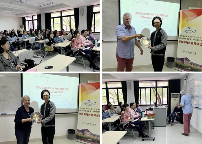 10月18日上午,新西兰怀卡托大学教育学院Michael A. Peters教授和Tina Besley两位教授做客上海师范大学“学思湖海外名师讲坛”,为研究生们作了以“Education in the Age of Finance Culture”为主题的专题讲座。 ![]() Michael A. Peters教授通过大量数据描述金融时代下全球经济高速发展,教育和经济发展息息相关,由此认为教育在经济发展中起着举足轻重的作用。在最后的互动环节,同学们积极而有序地提问,与教授一起探讨怎样实现自己的人生计划、教育工作等一系列问题,而Michael教授风趣又深入浅出的回答,更是让同学们受益匪浅。 Michael A. Peters是新西兰怀卡托大学教育学院教授,全球教育研究中心副主任,主要研究领域为教育哲学、知识社会学等,同时担任美国伊利诺伊大学香槟分校名誉教授,詹姆斯库克大学创意艺术学院等校兼职教授,期刊Educational Philosophy and Theory责任编辑。Tina Besley是新西兰怀卡托大学教育学院教育领导与政策系教授,全球教育研究中心主任,主要研究领域为教育政策与政治、高等教育评估、全球教育研究等。 (供稿、摄影:教育学院、国际交流处 编辑:新闻中心) |