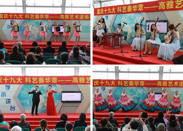 乘着科技与艺术的双翼展翅飞翔,吹响青春的号角,不忘初心砥砺前行!为庆祝党的十九大胜利召开,营造浓厚的喜庆氛围,促进科学普及与艺术传播的跨界融合,10月28日下午,我校音乐学院与上海科技馆联合举办“科艺庆盛会 喜乐奏华章”高雅艺术进场馆活动,由我校音乐学院艺术团师生与科技馆表演团队在上海科技馆为游客们带来了一场科技与艺术融合的视听盛宴。上海科技馆党委副书记杨国庆和我校音乐学院负责人等出席此次活动。 ![]() 在金色的党徽下,艺术团学生脸上洋溢着笑容,怀着无比自豪与激动的心情,用一场别开生面的“快闪”形式演唱《歌唱祖国》,将此次演出拉开了序幕,给游客带来了别样的参观体验与心灵震撼。悠扬的手风琴曲《喀秋莎》与《啊朋友再见》,把人们带回了那段峥嵘岁月,风箱拉动,手指跳跃之间,琴声爽朗宛如天籁散落的铃铛落在人群中。音乐学院青年教师李伟、学生刘紫光、张晨艳等人用优美的歌声,带着深情的赞美,坚定的信念,赤诚的爱恋,完美地演绎了《永远的信仰》、《我的祖国》等歌曲,表达了我校师生对祖国的美好祝愿。世之有道德者,无不有赖于艺术与科学。艺术与科技的融合,并不是简单的由艺术组成,而在于创造耳目一新的认识方式与表现形式。上海科技馆表演团队将科技与艺术完美地结合起来,上演了科学表演《声音与音乐》与《水之密语》,通过独特的艺术表演形式,创新了科学知识传递的有效渠道,凸显了科学普及与艺术传播的有效融合。活动中,萨克斯四重奏《自由探戈》、民乐四重奏《欢沁》、古筝独奏《中华民谣》、女生小组唱《咕噜情歌》、男生独唱《松花江上》等表演穿插其中,以新颖独特的表演形式、激昂热烈的欢庆氛围吸引周围群众不断聚拢并加入其中。最后在大合唱《不忘初心》的歌声中,此次演出圆满落幕。场馆内、舞台上,每个人都成为了主角,用心歌唱,动情表演,为祖国母亲献上一份饱含深情而新颖别致的礼物。 ![]() 为了搞好这次别开生面的活动,音乐学院负责人之前专程到上海科技馆洽谈寻找科艺结合的最佳点。上海科技馆的领导也专程带队来到我校音乐学院商议活动的具体开展。音乐学院艺术实践部的负责老师以及各节目的负责老师都来到上海科技馆现场进行精心指导,确保演出的质量。 ![]() 本次高雅艺术进场馆一方面展现了我校音乐学院师生文化修养、艺术风采和精神面貌,另一方面通过艺术科技相结合的科普展演,诠释了科技创新与科学普及的重要意义。我校师生在未来的学习工作中将以十九大精神为指引,充分发挥中华民族强大的科技创造力和先进文化的积极引领作用,把科学和艺术紧密融合,以文化的繁荣兴盛助推中华民族的伟大复兴。 (供稿、摄影:音乐学院 编辑:新闻中心) |