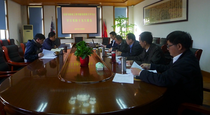 11月6日上午,信息与机电工程学院党政班子召开学习会,认真学习党的十九大报告,并结合学院工作实际开展交流。学院党委书记樊连生主持学习会,院长方祖华,副书记兼副院长钟黎安,副院长黄继风、黄新、陈军华,工会主席茅红伟参加了会议。 ![]() 党委书记樊连生谈到,十九大报告提出了四个全新的判断。这四个“新”为全党、全国人民指明了方向,对此,我们必须认真学习、深刻领会。院长方祖华谈到,十九大是一次举世瞩目、令人振奋的大会。习近平总书记在大会上做的报告内涵丰富,思想深刻,提出的目标和任务具体务实、明确可行。报告理论上和思想上的高度概括,对一切工作都具有指导意义。高校教师要不断提高思想境界和理论水平,不仅要学习和领会报告精神,还要积极地宣传。学院的建设与发展经历了比较长的历史阶段,如何更加充分地发展是班子需要思考和解决的主要问题。学院应紧密结合学校发展的方向和举措,把握建设新工科的历史机遇,转弱势为优势,努力提高教学科研和社会服务能力。副书记钟黎安说到,党的十九大具有重大、深远的历史意义。报告站在新时代的高度,回答了建设发展中的一系列问题。报告中强调了要建设教育强国,作为高校思政工作者,我感到自己肩负的历史使命十分艰巨。在以后的工作中,要不断加强理想信念和法制意识教育,关心困难学生,积极开展就业工作,建设一支过硬的思政队伍,紧紧围绕学校中心任务全方位做好各项思想政治工作。副院长黄继风说到,十九大报告高度评价了十八大以来的五年建设和发展取得的伟大成就,身在高校,我也深刻感受到这五年是科技进步和发展最快的五年。我们学院的学科发展还比较薄弱,今后,我们应该凝聚方向,与优势学科结合发挥强项,促进本学院的学科发展。副院长黄新认为,报告鼓舞人心,全面、务实、眼光长远。学院目前在专业建设的硬件资源方面比较匮乏,在服务社会方面还有很大不足,因此,在学科布局上需要进一步调整;在软件建设方面,需要加强教师队伍建设,不断提高教师教学科研水平和服务社会的能力,为学院发展和人才培养做出更大的贡献。 副院长陈军华谈到,十九大的胜利召开振奋人心,习近平总书记的报告明确提出了任务和目标,作为党员教师,我们要不忘初心,牢牢记住入党誓言,为人才培养做出更大的贡献。报告指出要办好人民满意的教育,我们要理解和满足学生发展的需求,改革教学模式和人才培养模式;要满足教师的需求,制定政策调动广大教师的积极性,发挥每一位老师的优势。工会主席茅红伟讲到,作为群团组织,要听党的话,坚持党的领导,教育群众跟党走,作为群团组织的干部,则应服从指挥,为党分忧,为民谋利。学院工会组织也要根据社会主要矛盾的转变,一切工作围绕学院中心工作来开展。 (供稿、摄影:信息与机电工程学院 编辑:新闻中心) |