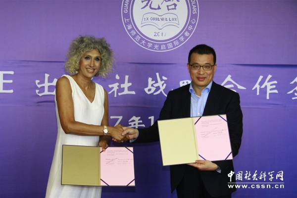 SAGE亚太地区总裁Rosalia Da Garcia与光启学者中心负责人、上海师范大学教授陈恒签署合作备忘录,开启了光启中心与SAGE集团的战略合作。Rosalia Da Garcia介绍了SAGE的创立史、宗旨和在中国的发展,对光启--SAGE出版社的合作前景充满信心。SAGE是世界领先的独立学术及专业出版商国际知名出版公司,出版项目涵盖了商业、人文科学、社会科学、科技、医学等各个学科领域,在国际社会科学学术出版领域位居世界前列,在国际学术界享有盛誉。