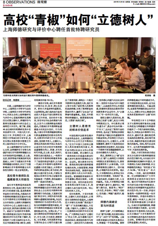 东方教育时报:高校“青椒”如何野立德树人冶——上海师德研究与评价中心聘任首批特聘研究员