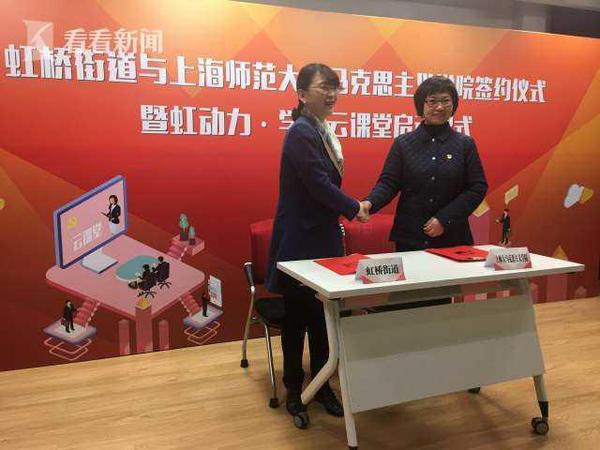 今天(3月21日),上师大马克思主义学院与长宁区虹桥街道签约,启动学习云课堂,上师大理论宣讲团也正式亮相”白领之家“。