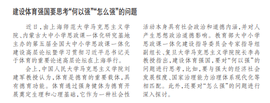 社会科学报:建设体育强国要思考“何以强”“怎么强”的问题