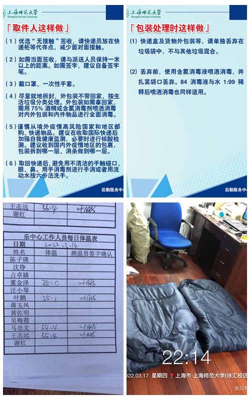 3月13日,一接到学校闭环管理通知后,管理员朱纪林、余学兵顾不上回家安顿妻儿,直奔学校安排快递对接工作,启动快递防疫应急预案。3月13日晚,线上线下分头开会,安排工作。