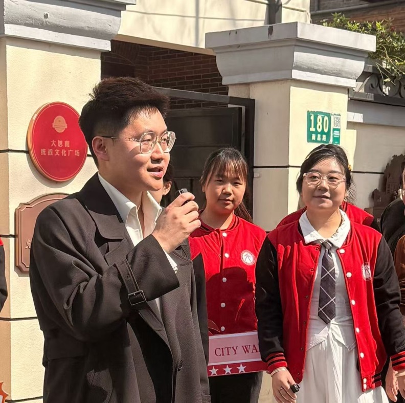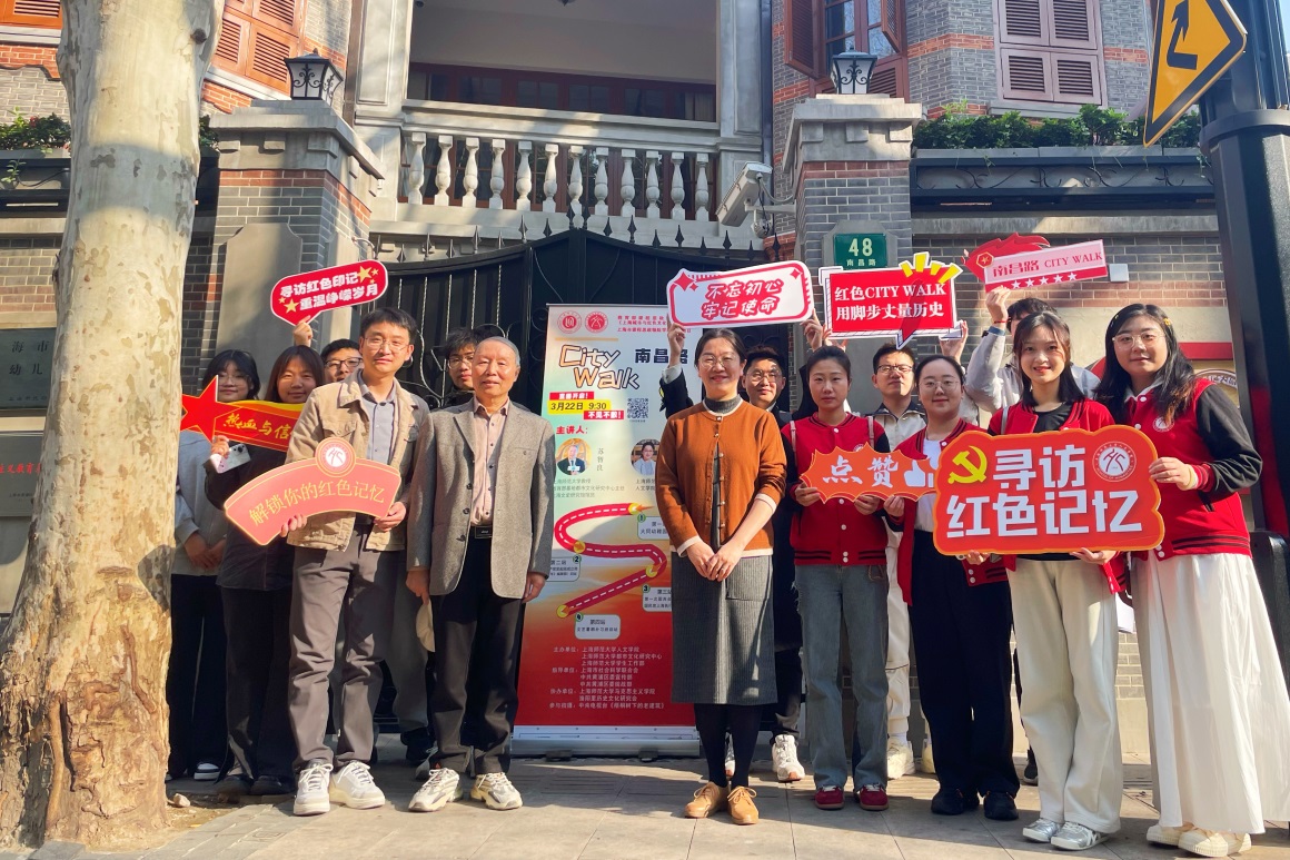 3月22日上午,人文学院习近平文化思想学生宣讲团的师生们在学院两位历史学家苏智良教授和姚霏教授的带领下踏上了一场跨越时空的春日红色寻根之旅。上海是中国共产党的诞生地和初心始发地。上师大师生将红色文化资源融入思政“行走”课堂,在镌刻着红色印记的南昌路上,以脚步丈量历史,打卡红色地标,于行走中感悟中国共产党百年初心和奋斗历程,赓续红色血脉。本次活动由人文学院习近平文化思想学生宣讲团指导老师、人文学院辅导员王振辉担任主持。