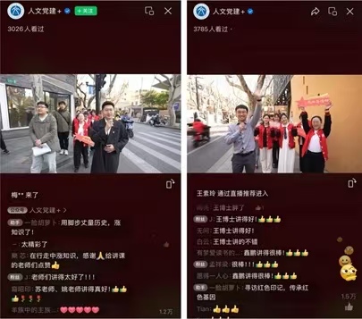 同时,作为教育部思政示范课程《上海城市与红色文化》和上海市课程思政领航学院课程实践板块,本次课程首次走上屏幕,通过实时直播、弹幕即时互动等形式面向公众,大胆尝试,超3700余观众在线上收看直播,获得1.5万余点赞。短短一千米的南昌路,承载着波澜壮阔的红色历史。人文学院师生们行走在南昌路的梧桐光影中,用青春弘扬文化,努力书写新时代红色育人的生动篇章。