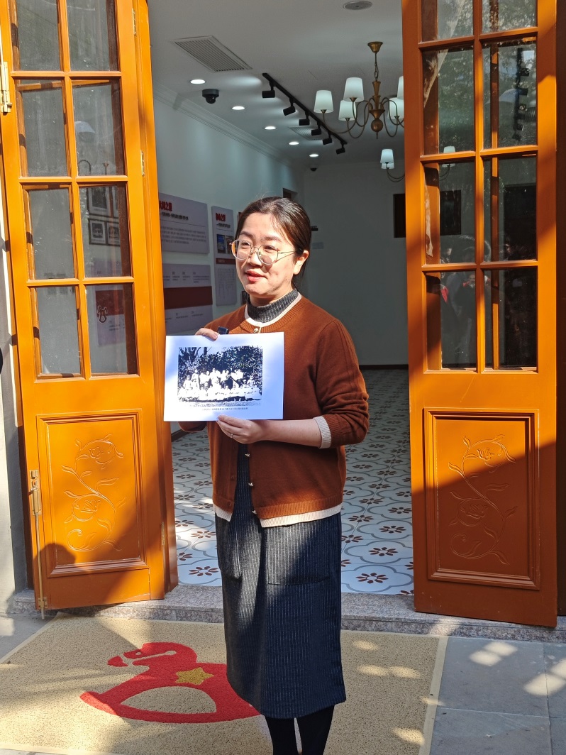 活动以南昌路为主线,通过沉浸式CITYWALK的形式,将第一课堂延伸至城市街巷。课程的第一站来到大同幼稚园旧址。在姚霏教授的娓娓道来下,这座隐匿于陶尔菲斯路56号(今南昌路48号)的“红色摇篮”揭开了它神秘的面纱。看似普通的小洋楼不仅闪烁着老一辈革命家“世界大同”的思想光辉,还曾在动荡恶劣的环境中为党的红色事业积蓄力量,是中国共产党早期关怀革命后代的生动见证。