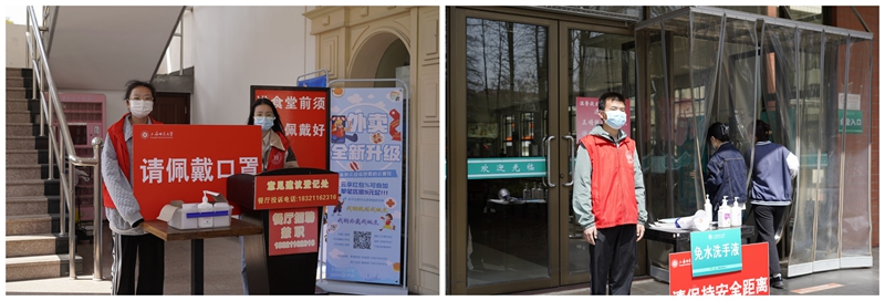 校园的各个公共区域均可见到红苹果慈善义工队,红马甲是他们的象征。防疫关键时刻有信机学子挺身而出,信机学院的义工队员们提醒同学们在防控疫情期间带好口罩,注意防护,在自己的空余时间为疫情的防控出一份自己的力量。