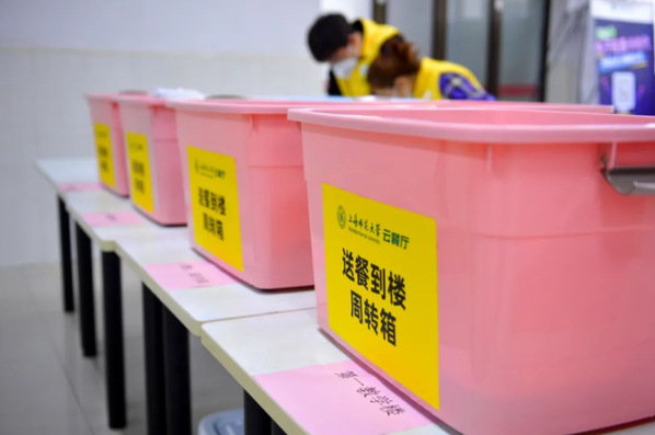 近期全国疫情多发,校园防疫牵动人心。闭环管理之下的校园,师生齐心协力共抗疫情。一日三餐、暖心暖胃,在这特殊的时刻,上海高校里出现了“送餐天团”,他们有的是后勤工作人员,有的是教职工和学生志愿者;有的运用着高科技配餐,有的借助各种运送工具和人力资源;他们用心准备,努力配送,每天将热乎乎的饭菜送到同学们手中,保证同学们的正常生活。让我们看看他们忙碌的身影吧,向所有辛勤付出的老师、同学们致敬!