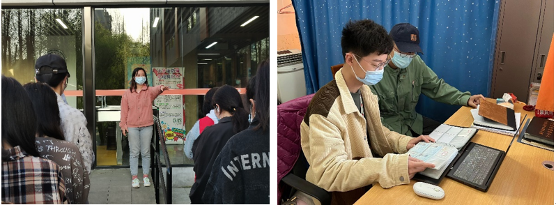 在完成专业教学学习的同时,美术学院师生积极参与到学校疫情防控工作中来。学院领导亲自坐镇,为学生两校区封控做好协调工作,解决实际困难。学院学工口辅导员黄佩韦、张亦鸣两位老师在封闭化管理前逆行返校,承担住楼辅导员工作,引导学生平复情绪,抓好防疫不放松。