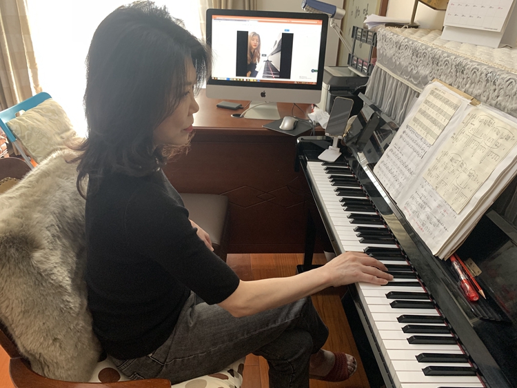 钢琴系副主任谈天佳副教授在家中授课