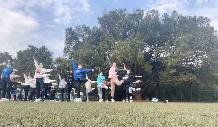 舞蹈专业学生在操场上迎风起舞