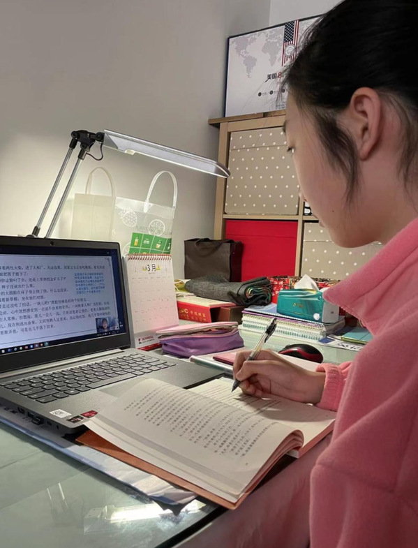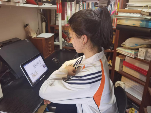 中学生们居家学网课 均为上海师范大学人文学院供图