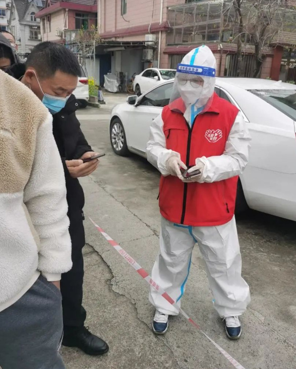 杨岑岑的父亲和母亲负责引导居民有序排队、戴好口罩、保持安全距离,并提醒居民准备好二维码,杨岑岑则帮助不会使用健康云的居民完成健康云核酸检测的信息填写,核酸检测也在一家三口明确的分工下有序开展。“我们仨是小家,社区是大家,守护‘大家’需要我们所有人的努力。”杨岑岑的父亲说道。