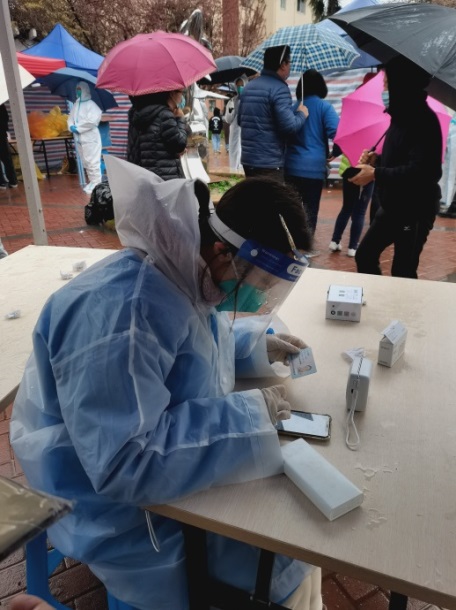 感想:作为一名预备党员,在得知小区48小时管控后,我立即报名了社区的志愿服务。凌晨群内接到通知,早晨志愿者培训,下午直接开始核酸检测。时间很短,人员众多,这是一场巨大的挑战,但大家众志成城、连续奋战,平稳高效地完成了连续4次的核酸检测工作。春已至、花已开,我们的力量很微小,但相信汇聚到一起也能成为抗“疫”寒夜的一束光!