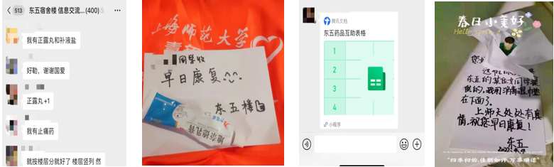 东五宿舍楼的同学为应对突发状况开展“药品互助”行动,同学们自愿分享自己的备存药品给更有需要的同学,爱与期待在楼群里传递……