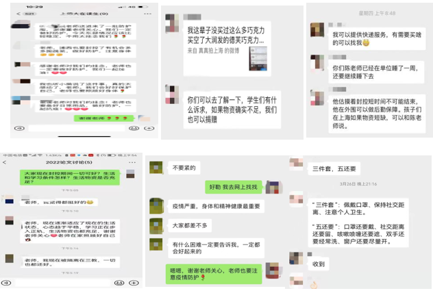 面对复杂严峻的疫情形势,学院迅速启动行政教师作为线上增援力量,补充到学工队伍中,共同开展一对一封控学生联系工作,时时是工作之时,处处是工作之地,人人是关心之人,校园里的师生成了大家共同的牵挂。