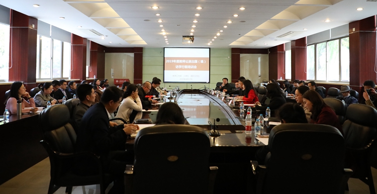 4月17日下午,我校2019年度教师公派出国(境)访学行前培训会在外宾楼101会议室举行。校长朱自强出席会议并讲话。教师工作部、人事处、国际交流处等职能部门负责人、学院分管外事工作的负责人以及2019年度即将出国(境)研修的30多位老师参加了会议。会议由教师工作部部长、人事处处长马英娟主持。