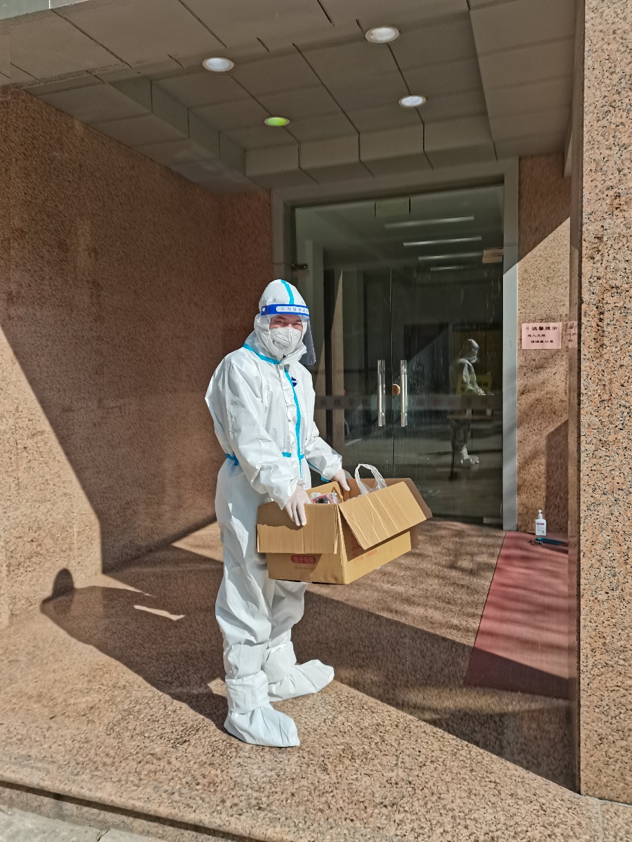 疫情就是命令,防控就是责任。“我是党员,我先上!”不仅在社区一线,在留校抗疫保障服务的一线,师生党员也在并肩作战。学院行政教工党支部书记刘明锋老师,从学校封控开始一直驻扎学校,服务师生,保障防疫后勤工作,现又在学校抗疫隔离区志愿服务,日夜奋战。还有留校服务的辅导员老师们,身为一名党员,关键时刻,坚决扛起责任、拿出担当、亮明身份。