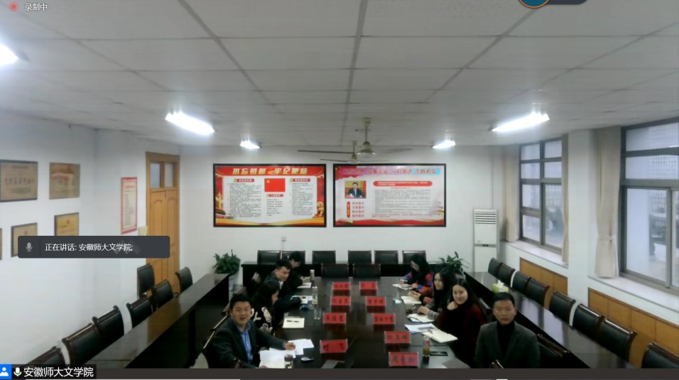 两学院首先就疫情下工作形势作互相关怀,“云”表达了迎难而上、共克时艰、抗击疫情的决心和愿望。安徽师范大学文学院党委副书记刘飞介绍了本学院的基本情况,并对此次学生工作“云”交流充满期待,希望借鉴学生工作经验和思路,努力提高育人水平和育德能力。人文学院党委副书记陈重来介绍了本学院学生工作基本概况,从夯实大思政基础、拓展教师教育品牌、打造高素质团队等方面就学院育人品牌项目作介绍,她谈到,近年来,学院紧抓教师教育特色、深入实施三全育人、注重培训孵化力度,着眼于学生教师素质及综合能力培养,积极助力大学生成长成才。