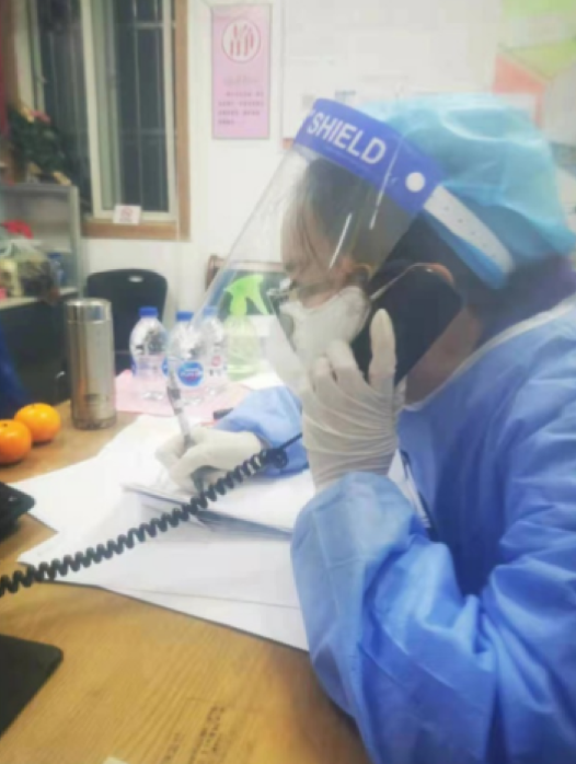 楼欣怡的妈妈是浦东新区康桥镇某居民委员会党支部书记。作为一名党员书记,2020年疫情初袭便带着女儿,利用居家网课的课余时间一起参加一线防疫工作。社区实行“挂图作战”,通过电话、微信各种途径保证排摸到每家每户,用插满不同颜色钉子的“防疫作战图”梳理小区住户的来源分布、租住情况等基本信息。