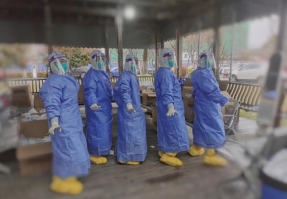 赵俊杰的母亲是奉贤区中心医院急诊科的一名护士,其所在单位收到了来自上海师范大学的核酸检测请求。她第一时间报名并带动周边的同事们一起报名前往上海师范大学奉贤校区开展核酸检测。“疫情就是命令,防控就是责任”,即使多变的天气以及长时间的重复性动作让她每天都深感疲惫,但她始终坚信“坚持到底就是胜利”。