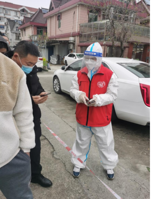 在上海浦东康花街道某自建房小区施行封控开展核酸检测的一天,来自上海师范大学外国语学院2019级英语(师范)专业的楼欣怡,靠着自己的“大嗓门”,在独栋自建房的一条条弄堂间穿梭,通知居民有序出门到指定地点排队进行核酸检测。