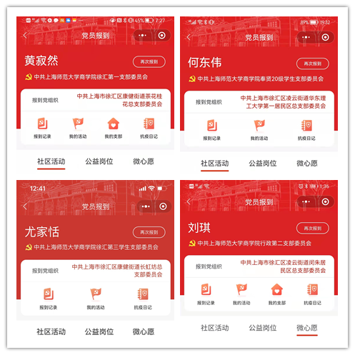 通知发布后,学院全体教工党支部和党员教职工立即行动起来,积极投身防疫一线。学院教职工党支部书记率先垂范,通过“先锋上海”平台完成“党员、党组织”双报到,亮明党员身份,主动到所在社区参加防疫工作,加入到社区志愿者队伍中。目前,学院全体党员教师均响应上海市委向全市广大党员发出的号召,完成双报到工作,在社区亮身份,见行动,冲锋在前,全力投身到抗疫斗争中。