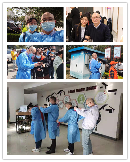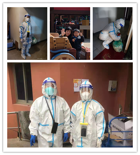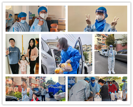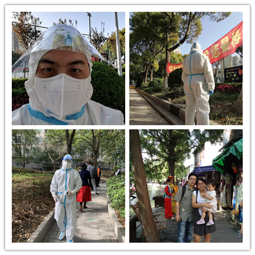 除了自己积极参与志愿服务工作,商学院的党员教职工们还积极支持家人为疫情防控添砖加瓦,他们的家属中也涌现出众多从事志愿服务的“大白”和“小蓝”们。如施仪凤老师的孩子现在正在社区承担志愿者工作,不久将赴方舱医院服务;还有一些非党员教师,如杜文杰老师等,他们也在积极参与为社区居民开展核酸检测维持秩序、转运防疫物资、配送蔬菜药品等工作,怀着积土成山,聚沙成塔的信念,为打赢这场疫情防控攻坚战贡献自己的一份力量。