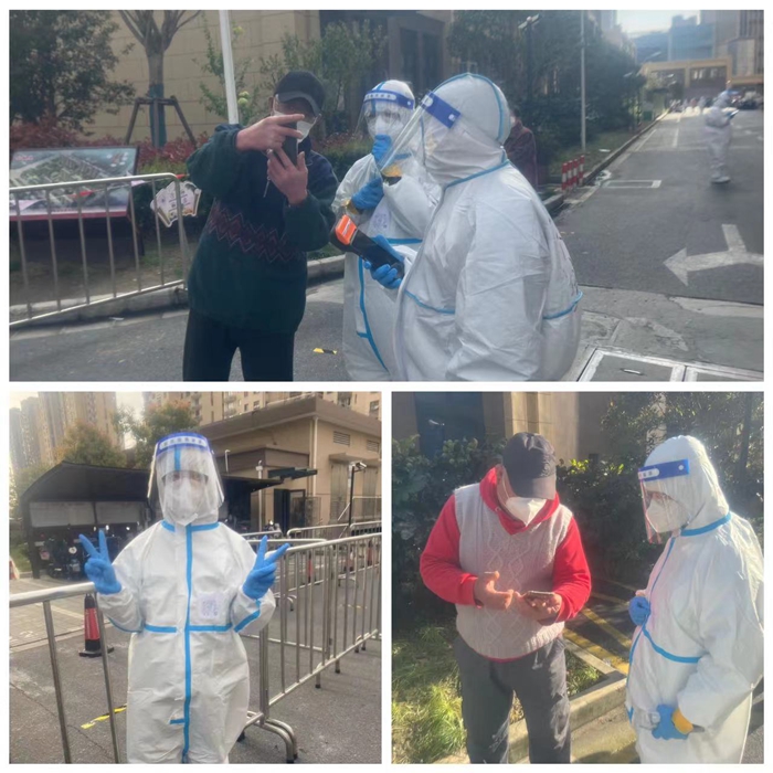 “我安排好孩子了,可以去!”支部青年党员宋庆清同志,虽然平日看起来柔弱娇小,但是在居家办公后第一时间主动向居委亮明党员身份,报名成为一名志愿者,承担社区核酸检测秩序维持工作。为了保证顺利到岗,凌晨4点半就起床准备,离开年纪尚小的孩子。平日为了节省防护服的损耗,经常不吃不喝等到工作结束,连续坚持了10小时。每日工作任务需要保证居民们保持好2米的排队距离,提醒和帮助居民们准备好健康云核酸检测登记的二维码,并把手机亮度调成最亮。她一声声细心叮嘱,一次次耐心解释换来了社区居民连连好评,她的脚步遍布社区的每一个角落。宋老师也透露,也许难免不放心家中的女儿,但是希望自己能成为孩子的榜样!期待早日恢复正常生产生活。